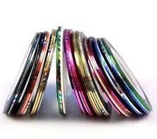 Тонкая самоклеящаяся лента с текстурным металлическим напылением для необычного дизайна ногтей. Изящный, простой и недорогой вариант украсить повседневный маникюр. Ленту можно использовать непосредственно в качестве декоративного элемента, особенно, если она с блестками. Или используйте ее, как вспомогательный материал. Попробуйте на однотонное покрытие наклеить полоски и поверх нанести другой цвет лака. После его высыхания полоски удаляются и получается очень эффектный дизайн с разноцветным фоном и полосками.