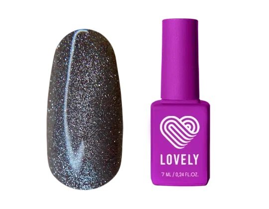 Преимущества гель-лака Lovely: - коллекция представлена в 9 оттенках; - мерцающий гель-лак с мелкими магнитными частицами; - глубокий 3D-блик позволяет создавать множество вариаций дизайна; - по-разному смотрится на черной и белой подложке. - содержит светоотражающие частицы; - эффектно смотрятся даже без использования магнита; - самовыравнивающееся покрытие; - стойкое покрытие от 3 до 5 недель без потери глянца и качества цвета; - легко снимается с помощью жидкости для снятия.