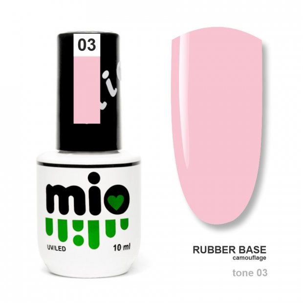 Каучуковая камуфлирующая база MIO – самовыравнивающаяся база ровно ложится в один слой. Имеет нежные оттенки, подходит для французского маникюра, также в качестве самостоятельного покрытия для тех, кто любит натуральный цвет ногтей. Содержание РН 5-6