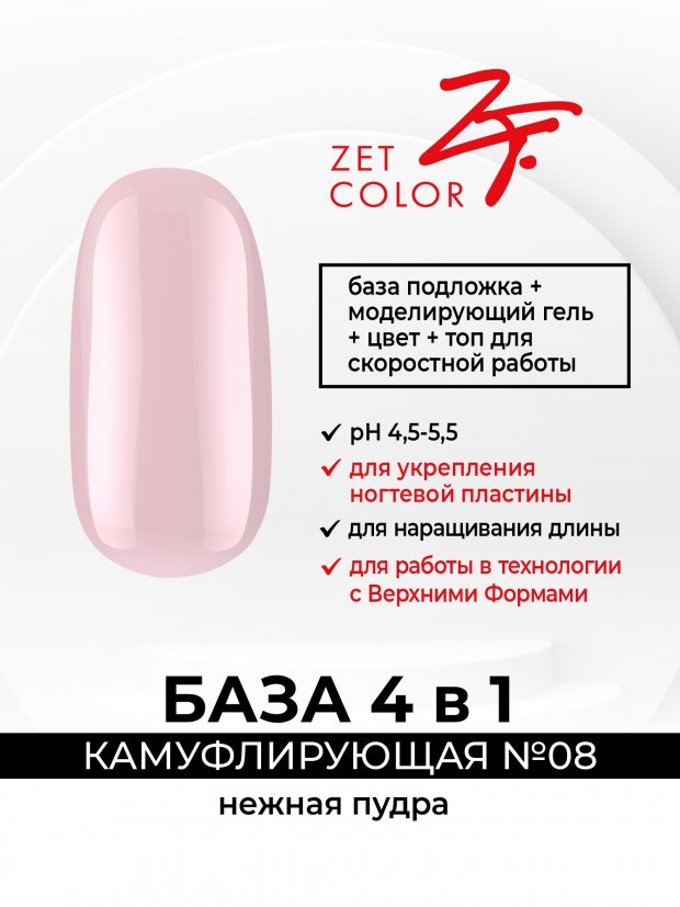 Описание Zet Color База камуфлирующая 4 в 1, 15 мл (№009 Холодный нюд)
