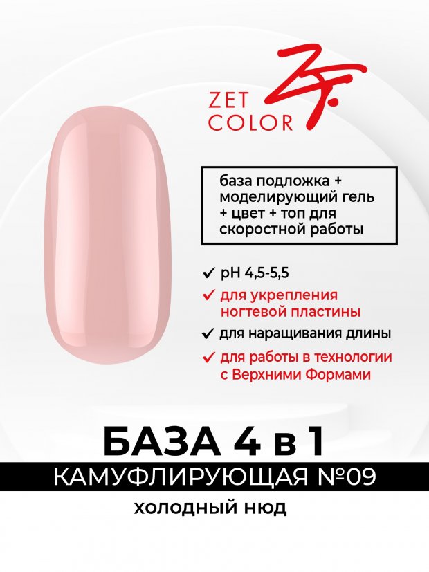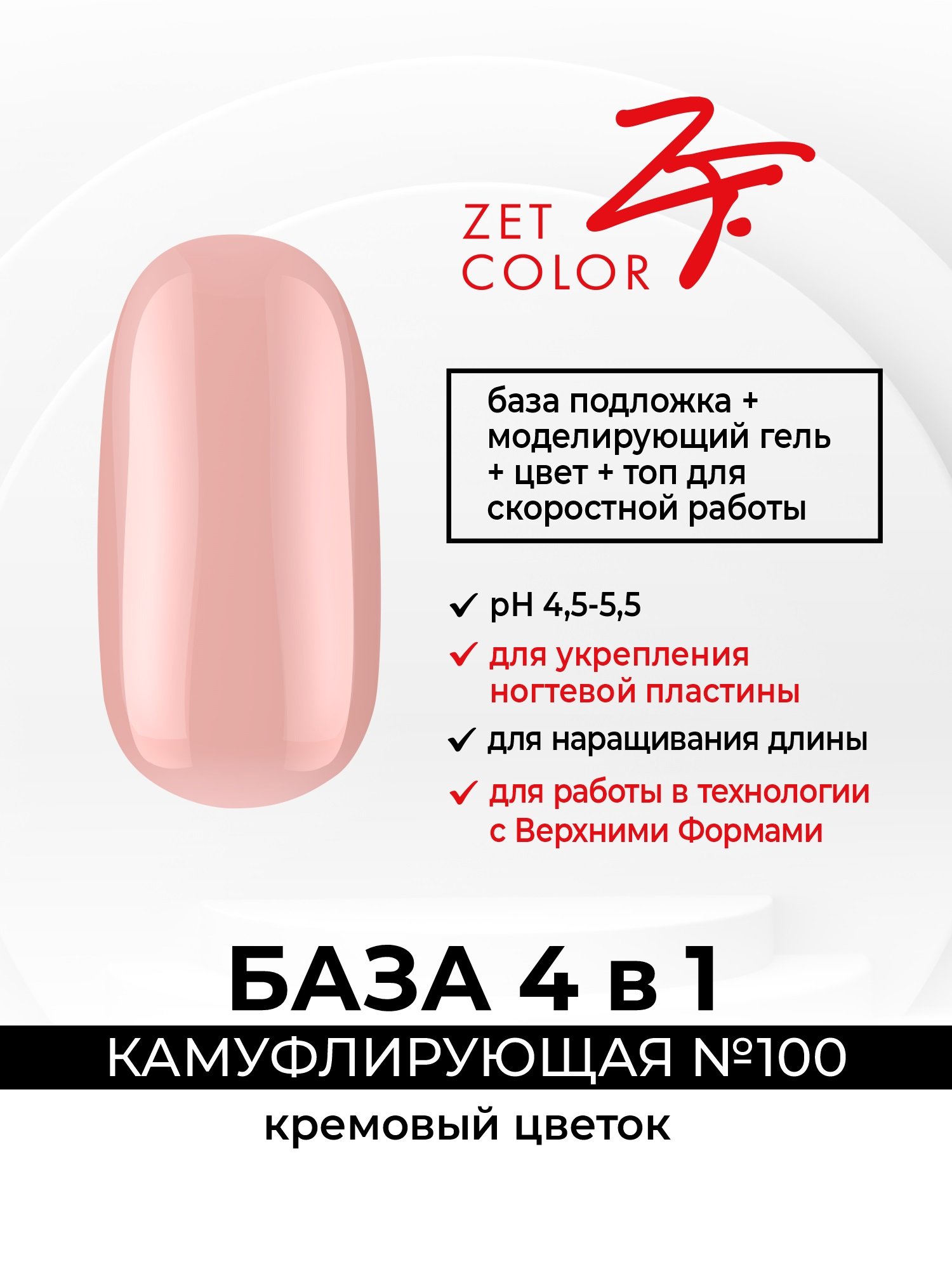 Описание Zet Color База камуфлирующая 4 в 1, 15 мл (№100 Кремовый цветок)