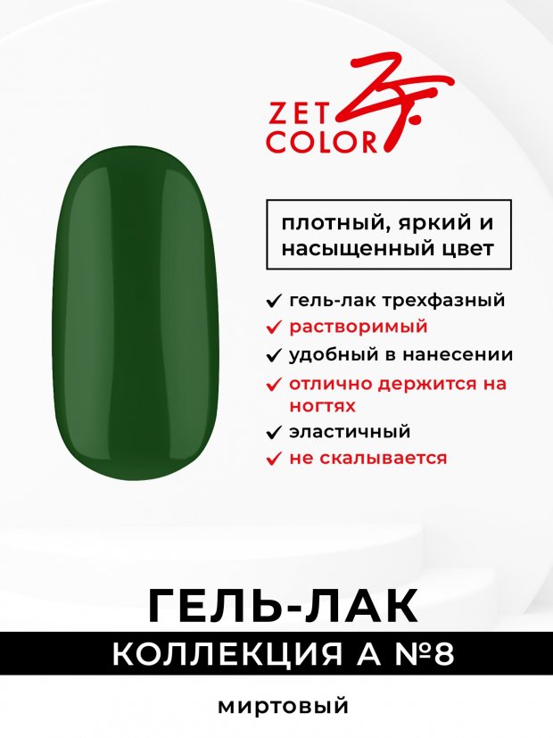 Описание Zet Color Гель-лак "Коллекция А", 8 мл (№A13)