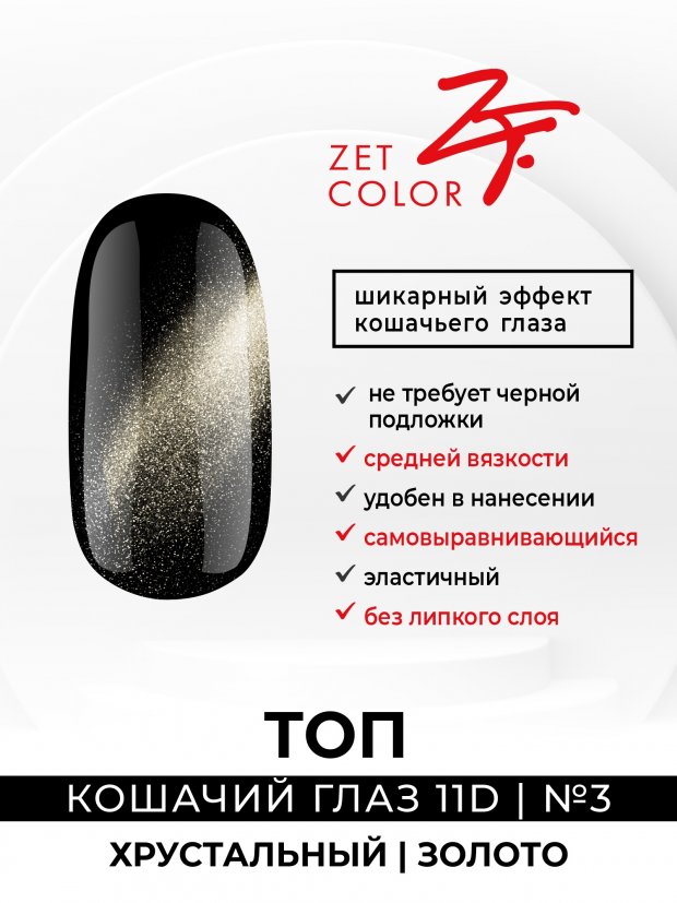 Описание Zet Color Топ Хрустальный без л/с "Кошачий глаз", 8 мл (Серебро 11D)